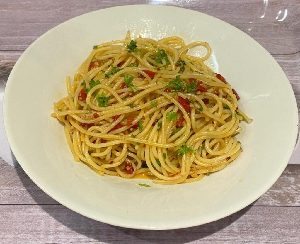 - Stir in 3 teaspoons of aglio e olio seasoning (dried garlic, chilli, parsley, oregano)